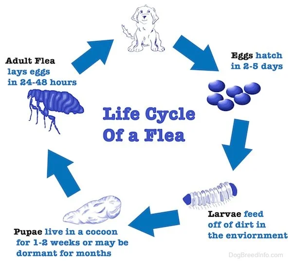 Fleas are an external parasite/wingless bug. They bite their host and typically ingest blood for survival, while finding a safe warm body perfect for their eggs, they decide to make your pet their new home. Fleas DO NOT go away in the winter, yes...you don’t see them as often and you may think they freeze then die off but they actually don't die, and sometimes they live inside your own home over the winter. If there is a warmer day out during the winter they will unfreeze and come back out and start infiltrating themselves back into our lives. Fleas can completely invade your house and they are very difficult to get rid of as the lifecycle of a flea lasts about 60 days. I places info-graphs below for references!